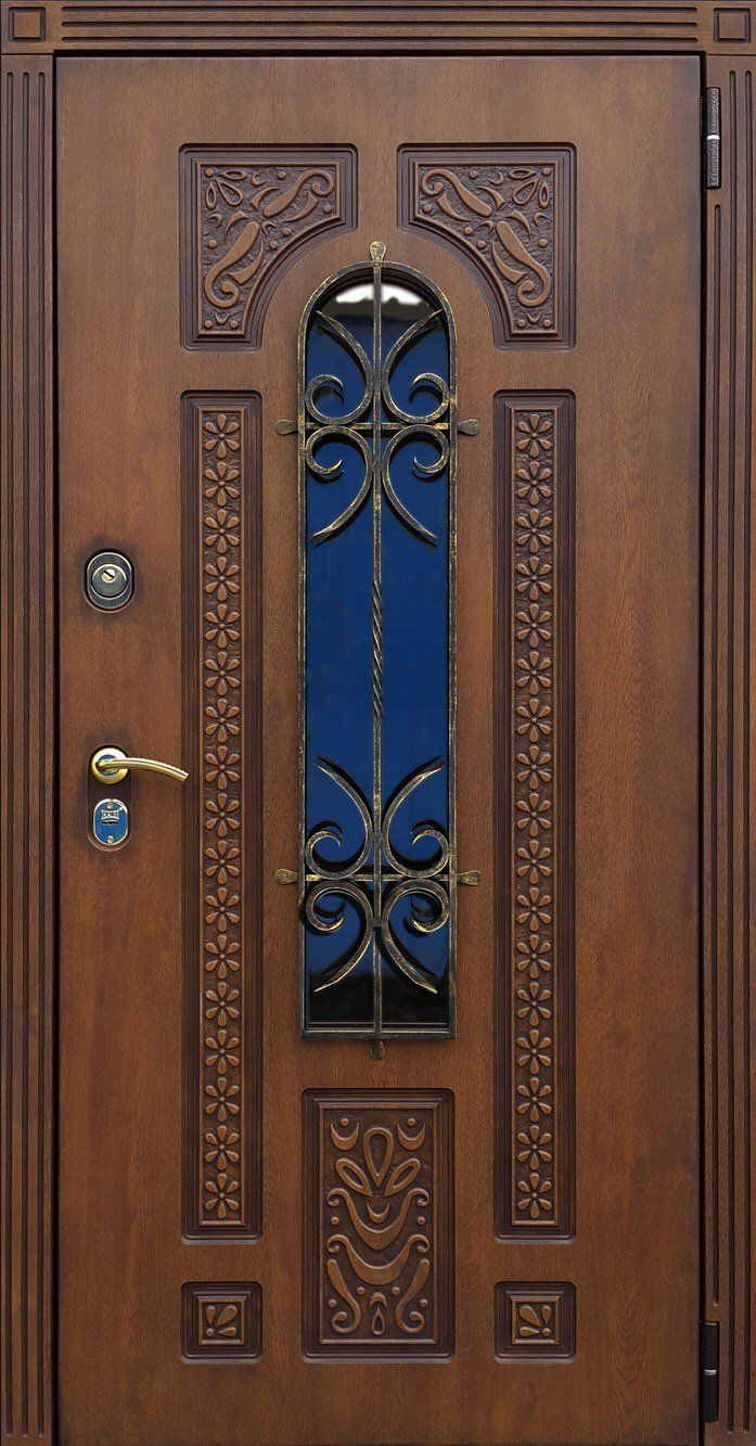 Входные двери в Калуге с применением декора витражом изготавливаются из стального профиля, придающего прочность конструкции, а сама витражная вставка обладает высокой взломостойкостью, поскольку для витражных композиций используется специальное стекло, обработанное особым образом. Усилить надежность витражного элемента можно с помощью использования декоративных кованных решеток.